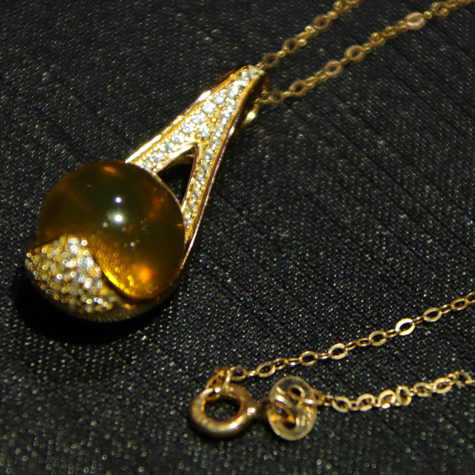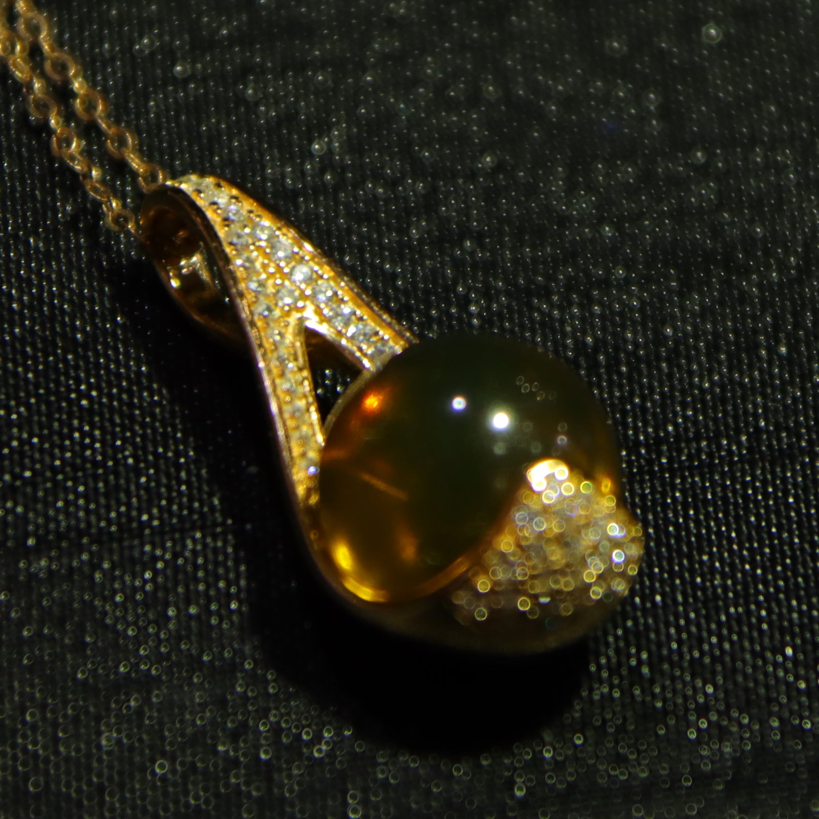Romantic Gift for Girlfriend: Natural Blue Amber Pendant Necklace 11mm | 925 Sterling Silver Jewelry for Women
